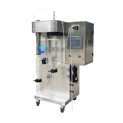 傳統的噴霧干燥過程分等速和減速兩階段。在等速階段,水分蒸發是在液滴表面發生,蒸發速度由蒸汽通過周圍氣膜的擴散速度控制,其動力是周圍熱風與液滴的溫度差,溫度差越大蒸發速度越快,水分通過顆粒的擴散速度大于蒸發速度。然后,當擴散速度降低而不能再維持顆粒表面的飽和時,蒸發速度開始減慢,干燥開始進入減速階段。在減速階段,顆粒溫度開始上升,干燥結束,此時物料溫度接近周圍空氣溫度。歐蒙相對于傳統機器而言擁有一體化的菜單式微處理控制器,可以直接設置***溫度、氣流量、泵速、自動變頻等,實現數據采集以及過程監控和控制。自動吸取攪拌泵,使樣品的液體從容器中通過噴嘴進入千燥腔,同時壓縮空氣從外層套管進入干燥腔,使液體微粒化,熱空氣從.上層進入與噴霧過后的液體微粒融合,樣品開始干燥,千燥后的粉粒通過旋風分離器與廢氣分離后進入收集瓶,廢氣則通過軟管直接排到大氣或空氣過濾裝置。